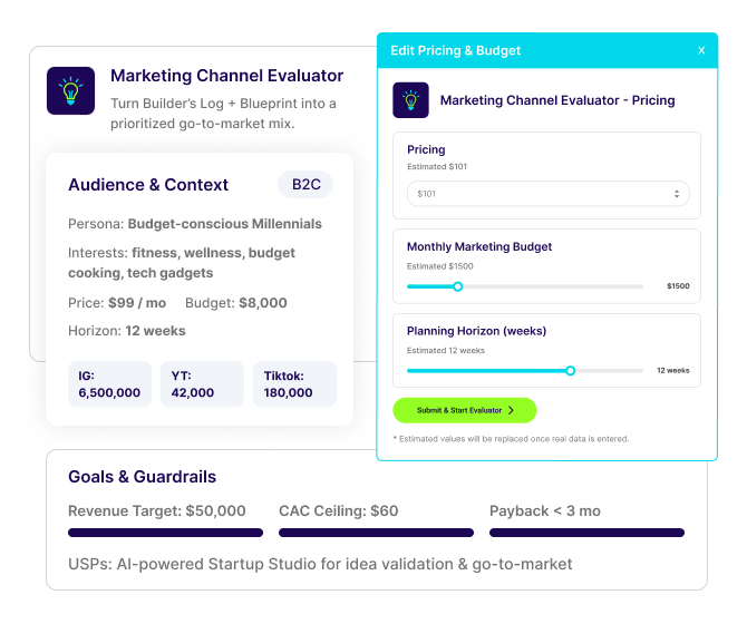 With built-in tools like the Marketing Channel Evaluator, Competitor Deep Dive, and a Financial Performance Toolkit — featuring the Cash Flow Forecast, Break-Even Calculator, Unit Economics, and KPI Dashboard — you’ll uncover where your brand fits best and how to position your offers for maximum reach and return.