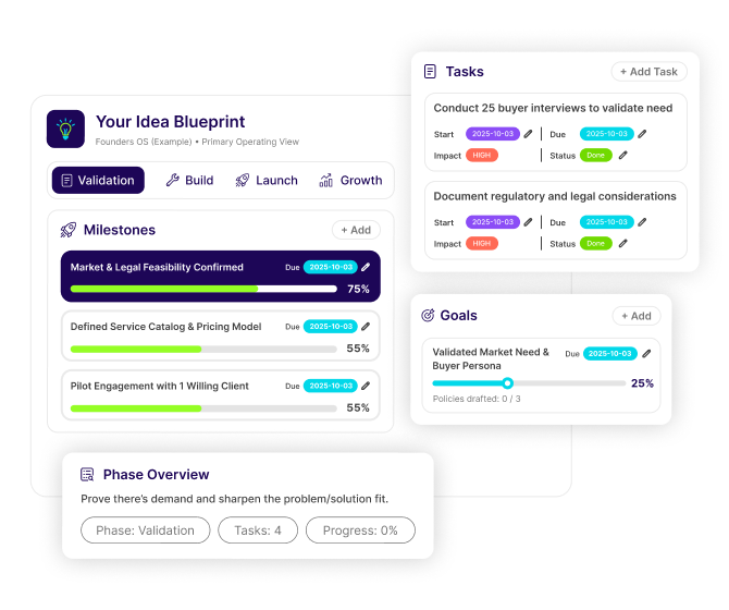 Whether you’re launching a new offer, producing content, or scaling your next project, it builds a living roadmap that keeps you focused, flexible, and profitable.